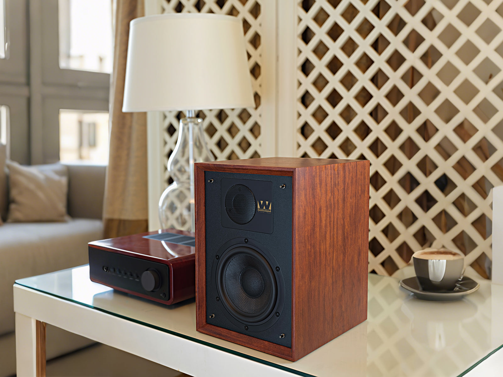 Denton 85th Anniversary is a two-way speaker in the classic bookshelf tradition, beautifully hand veneered in Mahogany by Wharfedale cabinet makers with an inset front baffle and traditional Tungsten cloth grille.